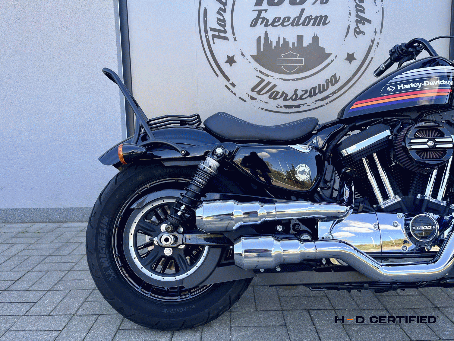 Wyposażenie dodatkowe: - Stage one - Akcesoryjny filtr powietrza - Wydech Vance & Hines granade - Krótszy przedni błotnik (posiadamy również orgnialny) - Manetki akcesoryjne H-D - Gmol - Bagażnik - Sissy Bar - Relokacja tablicy rejestracyjnej - Sakwa skórzana H-D - Korek wlewu paliwa Motocykl został wyposażony w nowe opony. |